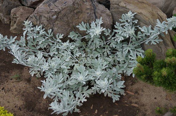 Этимология. Научное название полыни — артемизия — дано в честь богини-девственницы Артемиды. Предполагают, что она первая открыла лечебные свойства полыни. Ассирийцы называли полынь «сердце орла», веря в то, что если пить настой полыни, то человек станет сильным, не знающим страха. У римлян победителям состязаний на квадригах на Капитолийском холме давали выпить чашу с настоем полыни — это была победная награда, она дарила силы и здоровье на следующую победу. Виды и сорта полыни Род включает более 250 видов. Травянистые растения, распространенные по всему Северному полушарию. В садовом дизайне в качестве лиственно-декоративных растений используется около 250 видов. Полынь Шмидта (Artemisia Schmidtiana) Возможно, самый распространенный и высокодекоративный вид полыни. Многолетнее растение с ажурной серебристой листвой, образующее плотный полушаровидный куст высотой около 15-30см. Неприхотлива и зимостойка, выносит стрижку, дает очень чистый серебристый оттенок в цветниках. ‘Nana’ — кустики плотные, округлые, высотой 25-30 см. Листья перисто-рассеченные, нитевидные, серебристо-зеленые. Цветет в августе-сентябре, семена в сентябре-октябре. Вегетирует с середины апреля до октября. Размножение вегетативное. Полынь Стеллера (Artemisia stelleriana) Стелющееся многолетнее травянистое растение. Листья бело-серебристые, рассеченные, покрыты войлочным опушением. Цветки декоративной ценности не имеют. Цветоносы поднимаются до 50 см. Привлекательные резные листья этого растения образуют эффектные сочетания с цветами в розово-голубой или красно-оранжевой гамме. Полынь гибридная (Artemisia hybrida) ‘Powis Castle’ — длиннокорневищный многолетник, образует заросли высотой 35-40 см. Цветет в сентябре. Полынь Людовика, или полынь Людовициана (Artemisia ludoviciana) Длиннокорневищный многолетник высотой до 80 см. Цветет в августе–сентябре. ‘Valeri Finnig’ — образует заросли высотой 70-80 см, стебли слабо ветвистые, боковые побеги короткие; листья серые, обратная сторона почти белая, верхушка рассечена на несколько зубцов. ‘Silver Queen’ — образует заросли высотой 70 см, стебли ветвистые, густо облиственные; листья серебристые, сидячие, у основания с ушками. Полынь понтийская (Artemisia pontica) Распространен в степях Европы, Западной Сибири. Длиннокорневищный многолетник, образует заросли до 100 см высотой. Вегетирует с середины апреля до октября. Цветет в августе–сентябре, семена в октябре. Размножается семенами и вегетативно. Полынь Пурша (Artemisia purshiana) Родина - прерии, сухие участки в Северной Америке. Длиннокорневищный многолетник высотой до 70 см, стебли ветвистые. Листья цельные, продолговато-овальные, серо-зеленые, опушены с обеих сторон. Корзинки мелкие, желтоватые, в метельчатом соцветии. Цветет в июле. __Уход за полынью Лучше растет на бедных суховатых песчаных почвах, на самых солнечных местах. В поливе нуждается лишь изредка, в жаркую засушливую погоду. Поливают растения под корень, давая почве глубоко пропитаться влагой, затем делают большой перерыв — это стимулирует образование глубоких корней и повышает засухоустойчивость. __Размножение полыни Размножают полынь семенами, многолетние виды — делением куста и отрезками корневищ. Семена высевают в полутеплый парник в апреле. __Использование в садовом дизайне Полынь применяют при создании миксбордеров, травянистых бордюров, в том числе стриженых, 
